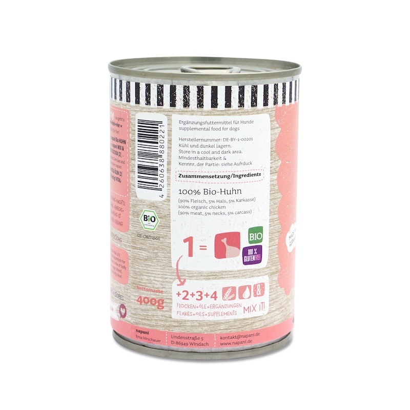 最高品質のチキン100%。ドイツのBIO認証を取得。