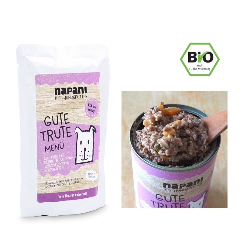 オーガニックターキー、オーガニックかぼちゃ、オーガニックズッキーニ、オーガニックココナッツフレーク、オーガニック亜麻仁プレスケーキ、オーガニックローズヒップ、オーガニックタイム、海藻